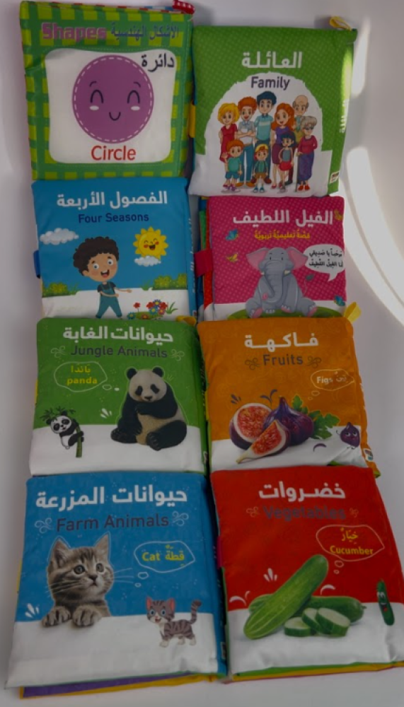 اجعل وقت القراءة أكثر تشويقًا لطفلك مع بكج الكتب القماشية، المصمم خصيصًا ليكون آمنًا وممتعًا للأطفال الصغار. هذه المجموعة من الكتب القماشية التفاعلية توفر تجربة فريدة تجمع بين التعلم والمرح والاستكشاف، حيث تساعد الأطفال على تنمية المهارات الحسية والإدراكية من خلال ألوانها الزاهية وملمسها الناعم.